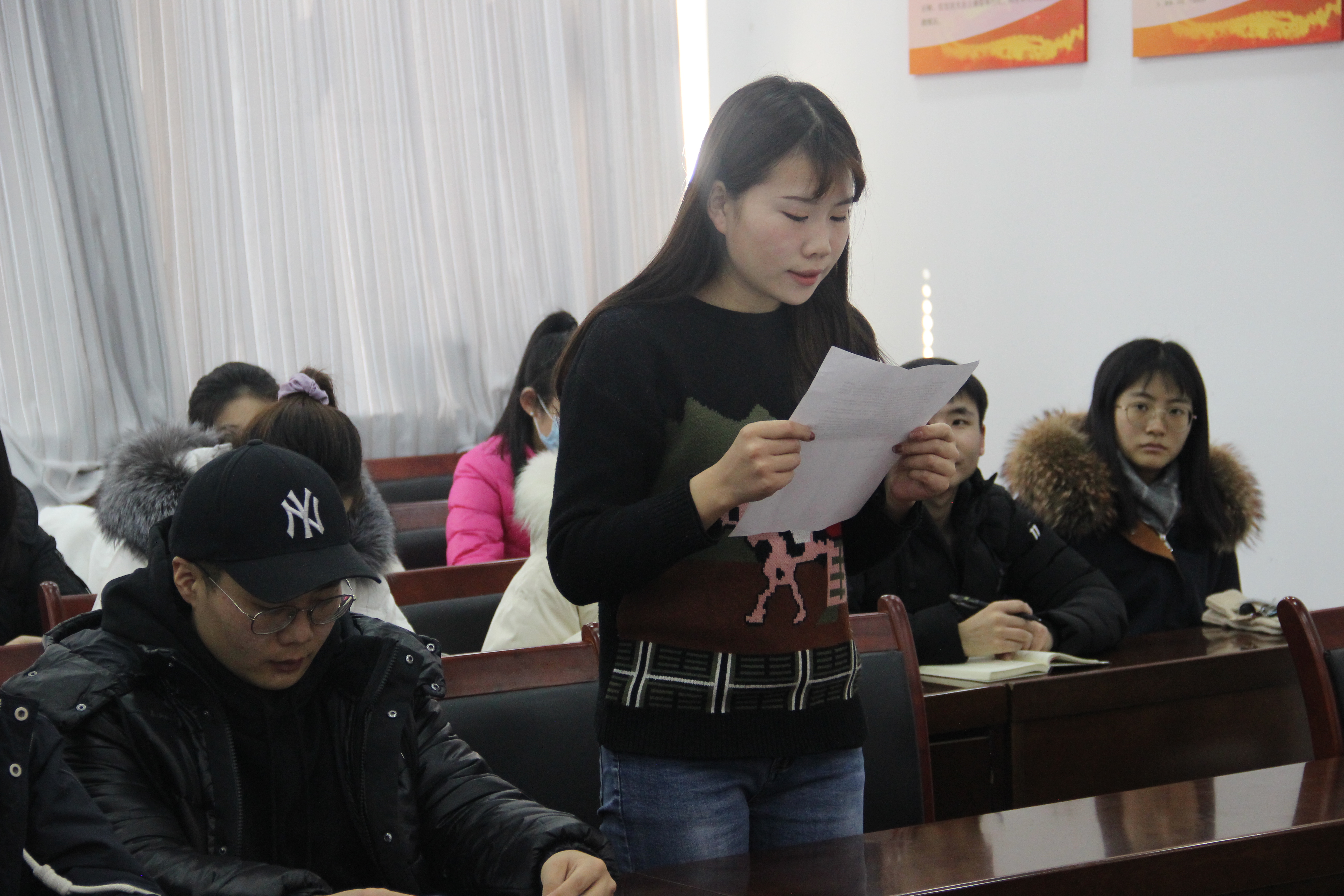 为持续推进学院研究生党支部党建工作,为党支部注入新鲜血液,增强组织活力,12月22日,于11号教学楼党员活动室召开了研究生党支部大会。此次党支部大会主要就预备党员转正、党支部增设委员等事宜进行了投票表决。研究生党支部书记郑雪萍、学院组织员孙元国、研究生辅导员刘妙祎,及研究生党支部全体学生党员参与了本次大会。