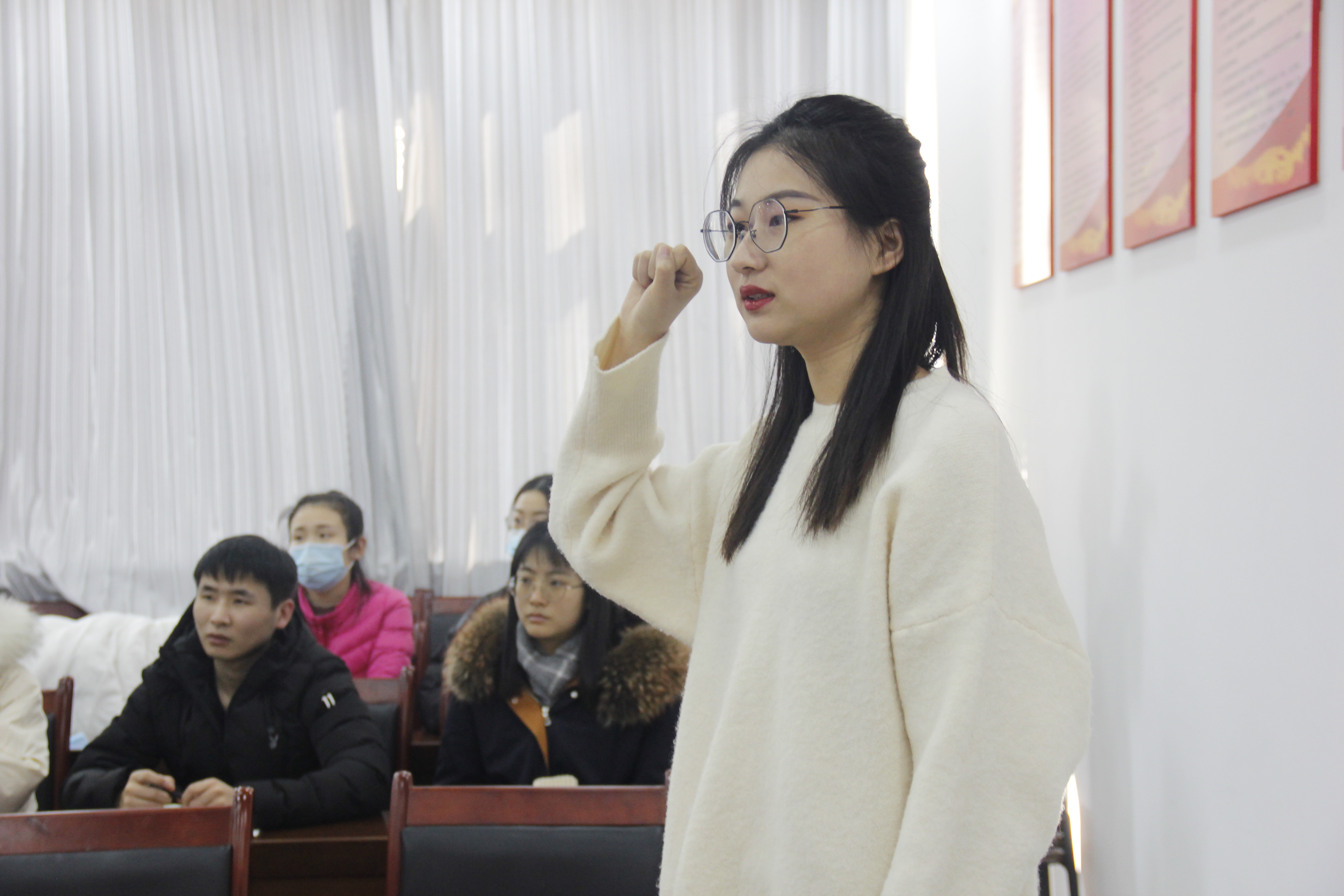 大会由研究生党支部书记郑雪萍同志主持,研究生预备党员程萌、刘丽霞、李涵汇报自己在预备期间的思想认识及学习工作表现,表达了自己转正的态度和今后努力的决心。