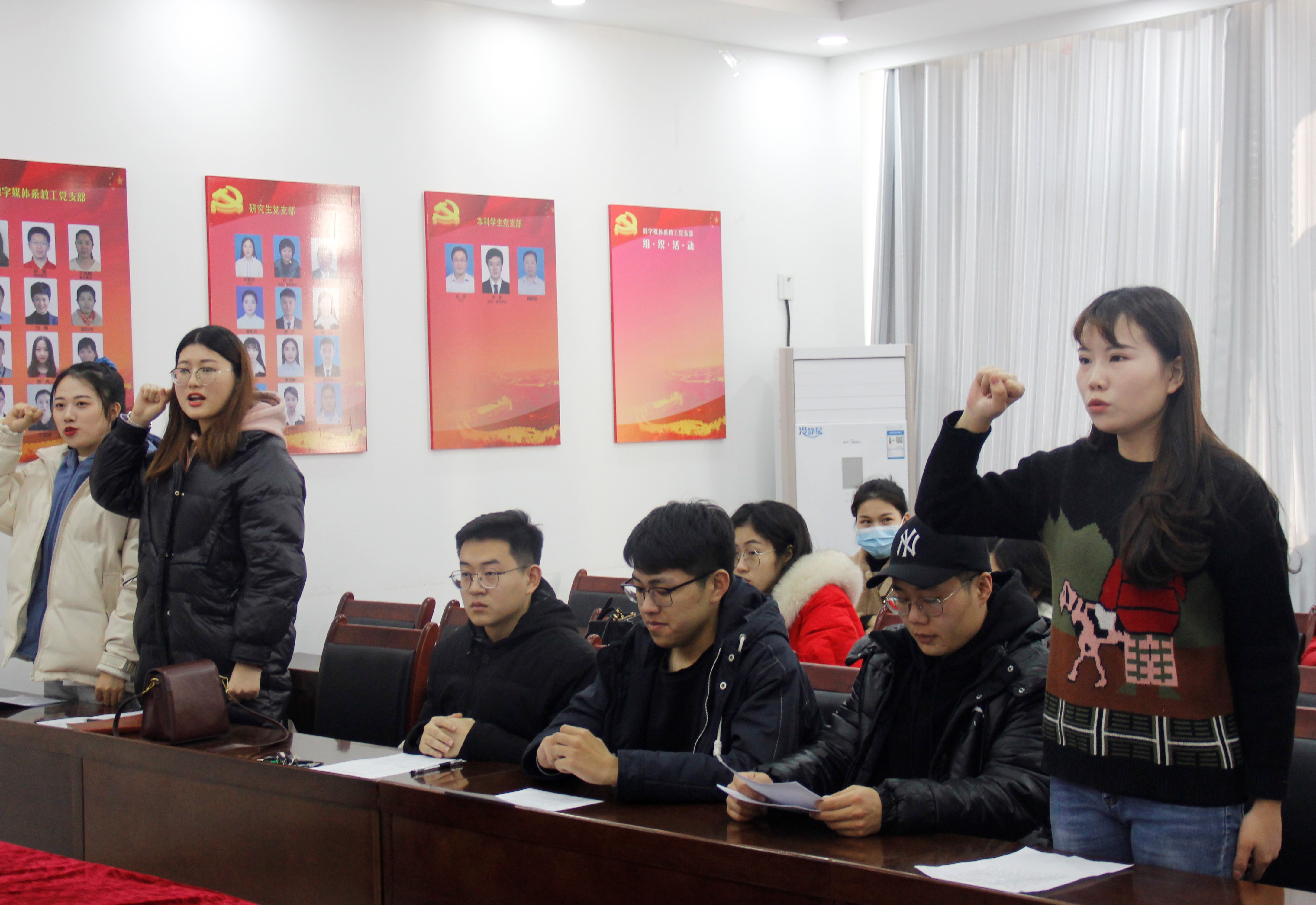 随后,由党员代表肖杰同学领誓,三名预备党员庄重宣誓。大会第二议程由支部书记郑雪萍同志宣读关于增选刘妙祎、孙元国两名同志为支部委员的决议,经支部党员投票表决通过。