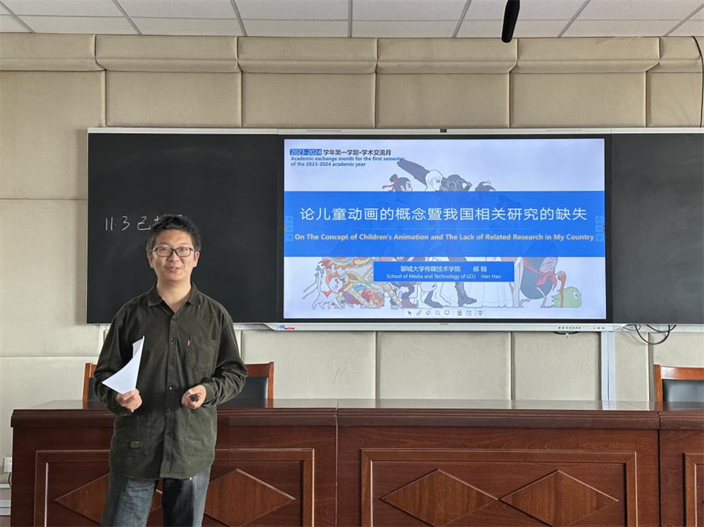 第三场讲座由科研秘书杨丽娟老师主持,数字媒体系主任郝翰老师、教育技术系王丽萍老师为主讲教师做开场讲座,郝翰老师围绕“我国儿童动画研究的缺失”展开深入剖析,王丽萍老师则以“PPT前沿功能探索”为题,向同学们展示了PPT合并形状等前沿功能,这些功能的展示激起了同学们在PPT制作技术方面的好奇心,对于同学们日后的学习、工作有着重要帮助。随后,12名优秀研究生代表分别从教师的情感劳动、教师数字素养标准比较等研究内容展示自己的研究思路。