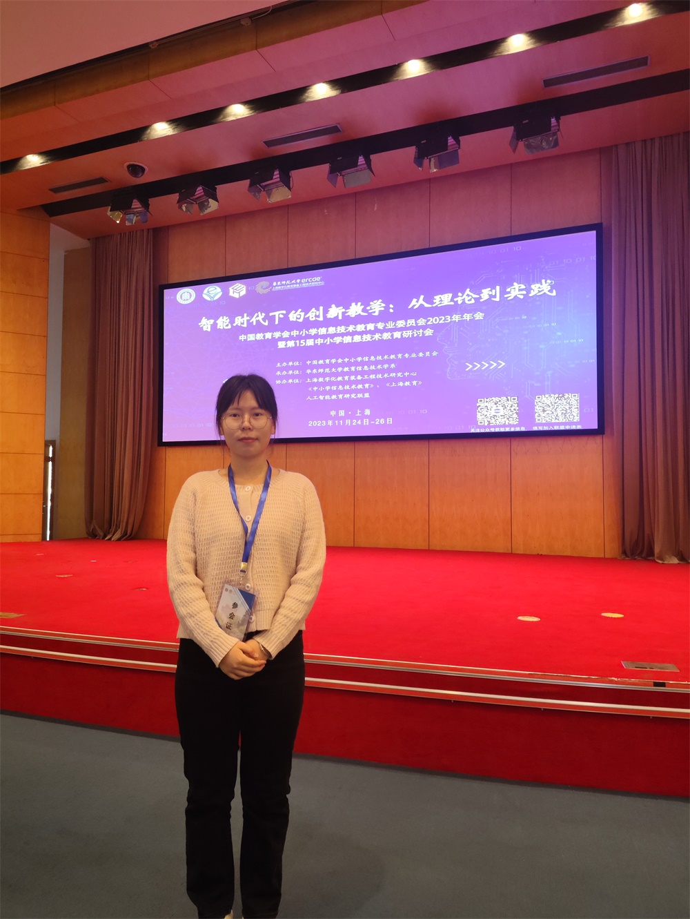 11月25日上午,高丽娟同学在分论坛上进行了论文汇报。在报告中,高丽娟同学结合课程改革的背景分析了人工智能技术驱动中小学信息科技学科教学的动因,然后以案例法从学习方式、教学手段、教学内容以及教学评价四个方面分析了人工智能技术的实践应用,最后探讨了人工智能技术促进信息科技学科教学改革的建议。与会专家肯定了高丽娟同学论文的研究价值,并从文章内容和实践方面提出了针对性修改建议。参会结束之后,高丽娟同学及时向导师汇报了会议的收获,表示通过这次年会,拓展了学术视野,了解到自己研究中存在的问题和不足,明确了改进的方向。