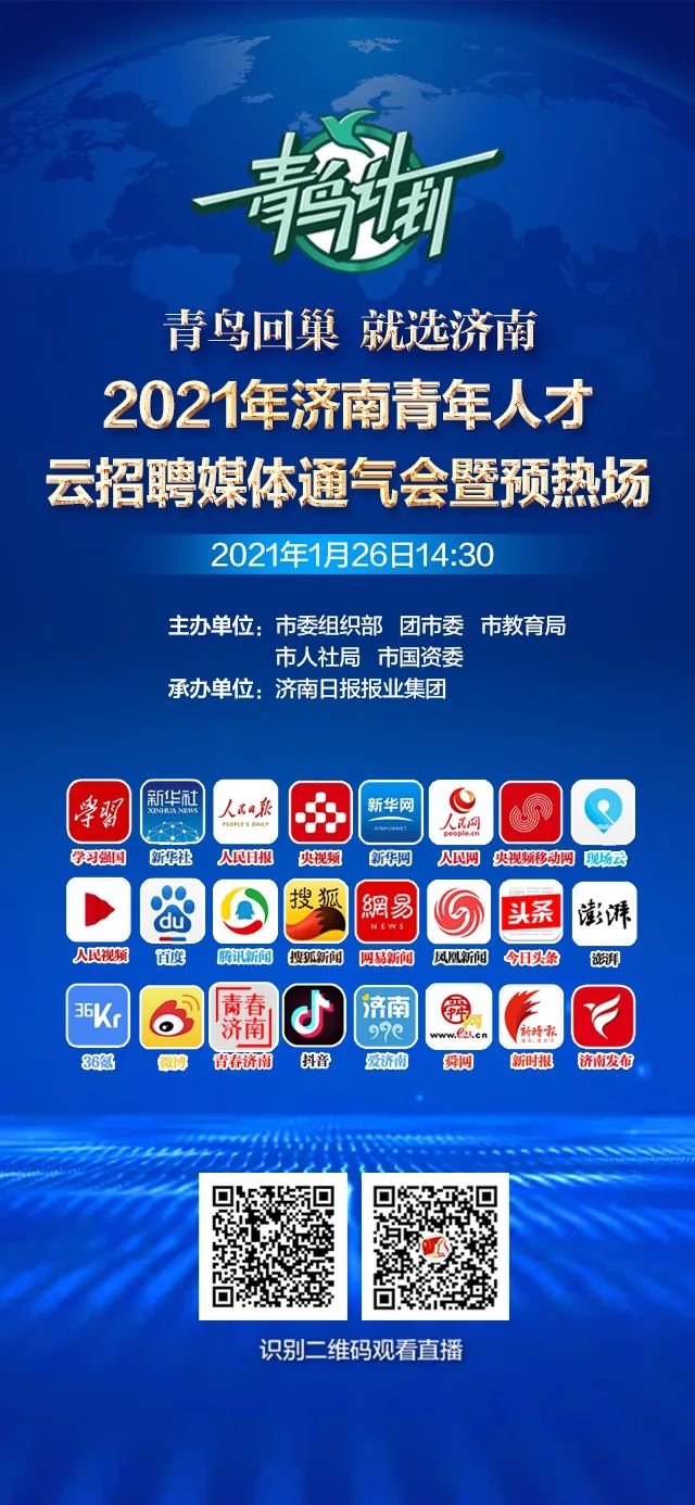 为深入贯彻落实济南市委市政府关于实施人才强市战略的部署要求,全力做好疫情防控期间大学生就业服务工作,共青团济南市委结合大学生寒假返家乡有利工作时机,启动“青鸟计划 追梦济南”青年人才云招聘第二季,通过系列招聘活动汇集高校智力要素、精准链接人岗供需、激发人才支撑活力,吸引集聚更多优秀高校毕业生来济就业创业。