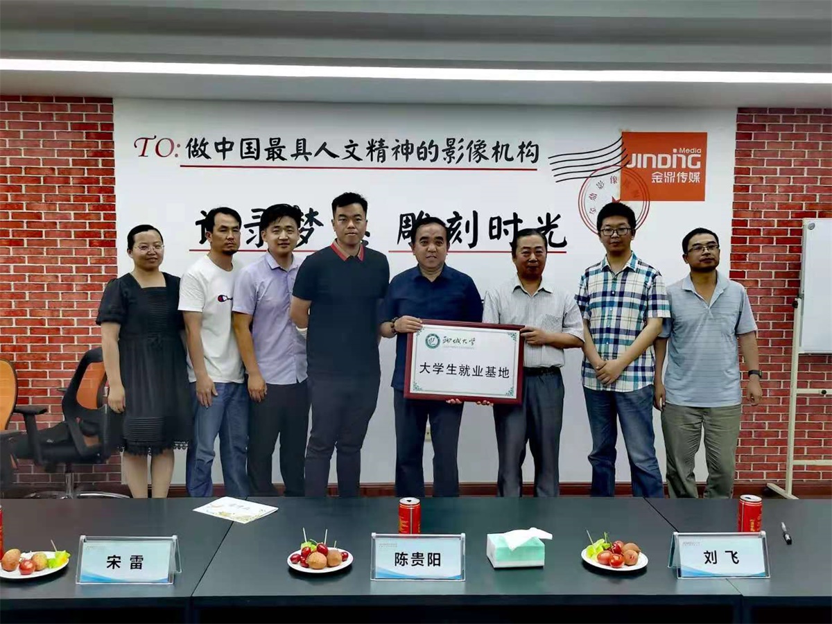 与聊城天和广告传媒有限公司合作签约暨大学生就业基地挂牌仪式于聊城天和广告传媒有限公司举行。学院党总支副书记魏建国、影视编导与技术系主任郭玉真、数字媒体系副主任郝翰、专职辅导员孟祥栋及金鼎传媒董事长陈贵阳、聊城天和广告传媒有限公司董事长雷东会等人参与了此次签约挂牌仪式。