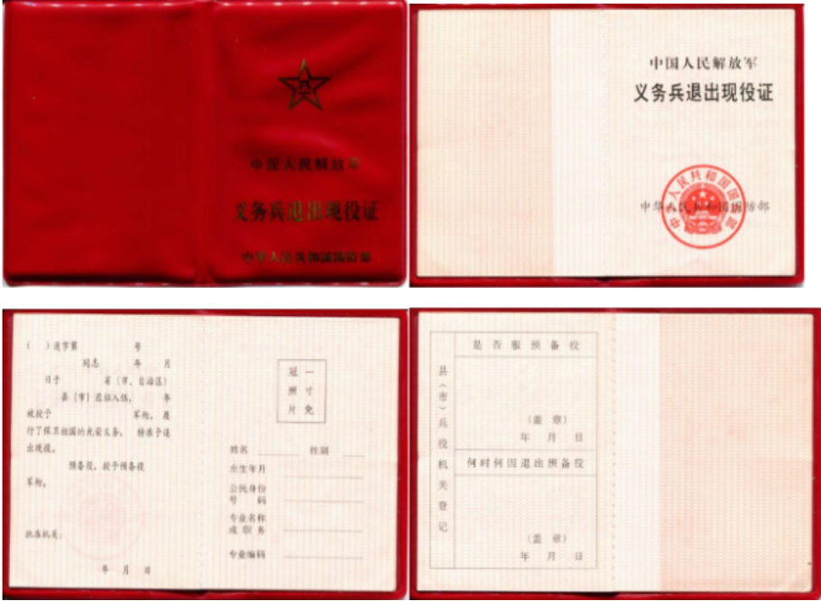 《退出现役证》样式: